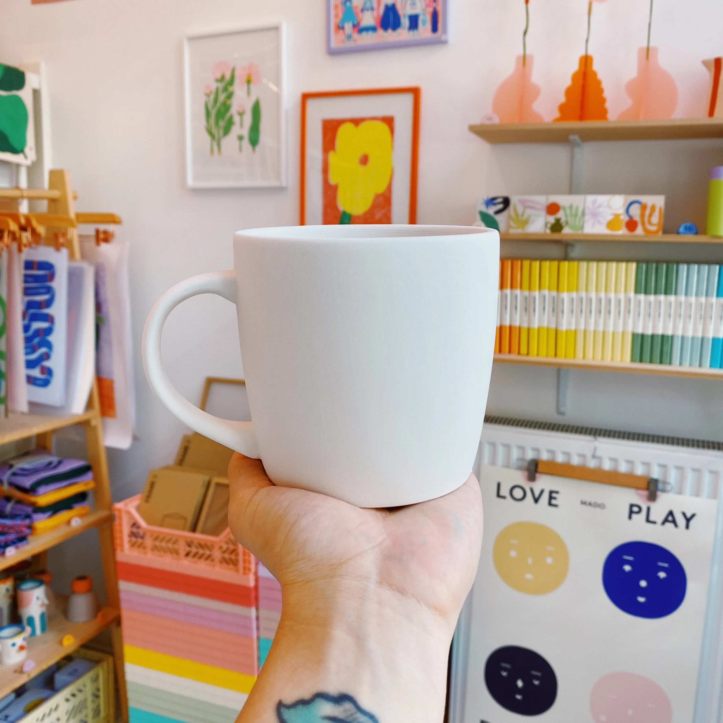 ✿ One ready-to-glaze cocoa mug. You can add extra objects here if you’d like